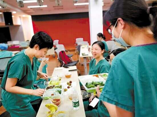 “哇,这么多好吃的啊,太贴心了!”5月27日晚上,结束一天外出支援核酸检测医疗队的队员们,回到广医三院员工培训中心休整,见到医院为大家准备的“能量补给站”开心地说道。 原来,广医三院党委关怀一线防疫工作人员,组织工会、医务科、护理部、总务科等部门做好后勤保障工作,设置了专门的“能量补给站”让外出检测的队员们“回家”时能够好好放松。 广医三院饭堂师傅为抗疫人员精心准备一日三餐,并特意制作了防暑降温的保健汤品,五花茶、雪耳糖水等消暑饮品,以防医务人员中暑。该院工会副主席吴兆红为医护人员派送营养便当。 ■采写:新快报记者 高镛舒 黎秋玲 通讯员 王慧 白恬 ■摄影:新快报记者 夏世焱 孙毅 羊城晚报记者 宋金峪