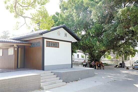 ■公共卫生间旁边,村民们在榕树下聊天。 |