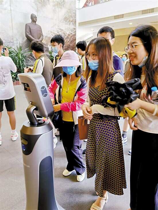 ■游客在体验园区的机器人讲解服务。 |
