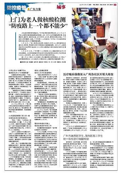 新快报讯 记者罗清峣 通讯员海教宣报道 新快报记者了解到,广州市越秀区学生于5月31日—6月1日、海珠区高三学生于5月30日统一在校进行核酸检测。 5月30日凌晨,广州市越秀区新型冠状病