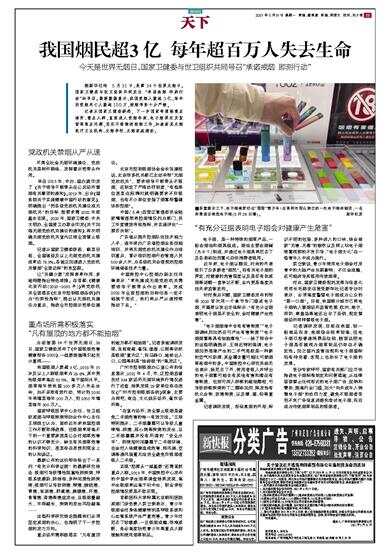我国烟民超3亿 每年超百万人失去生命