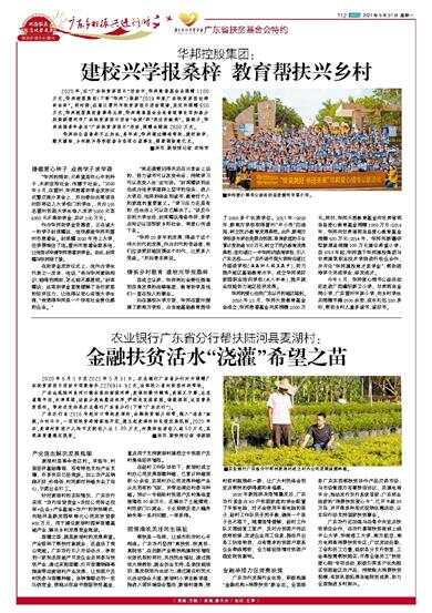 农业银行广东省分行帮扶陆河县麦湖村: 2020年6月1日至2021年5月31日,农业银行广东省分行对外捐赠广东扶贫济困日活动专项款物共2276914.92元,全部投入省内贫困村的帮扶。