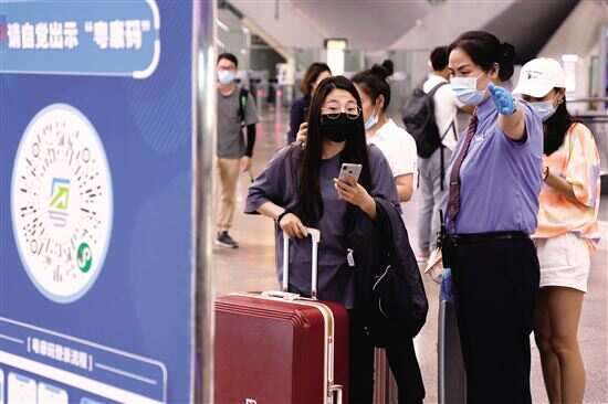 ■昨晚10时,广州南站乘客须持绿码和核酸检测证明进站。 新快报记者 毕志毅/摄 |