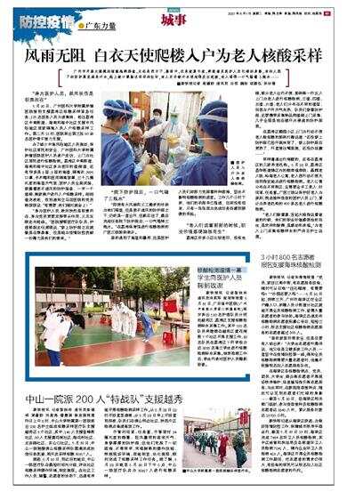 新快报讯 记者黎秋玲 通讯员彭福祥 梁嘉韵 刘星亮 潘曼琪 陈安琪报道 昨日上午8时,中山大学附属第一医院派出200名护士组成核酸采样医疗队支援越秀区5个社区,其中,140人支援登峰街社区,60