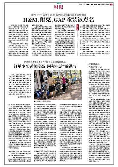 H&M、耐克、GAP童装被点名 海关“六一”公布5类81批次进口儿童用品不合格情况 新快报讯 记者陆妍思报道 在“六一”国际儿童节到来之际,海关总署对2020年6月-2021