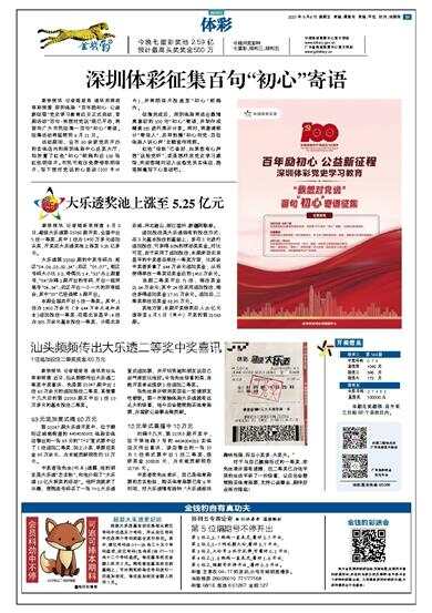 大乐透奖池上涨至5.25亿元