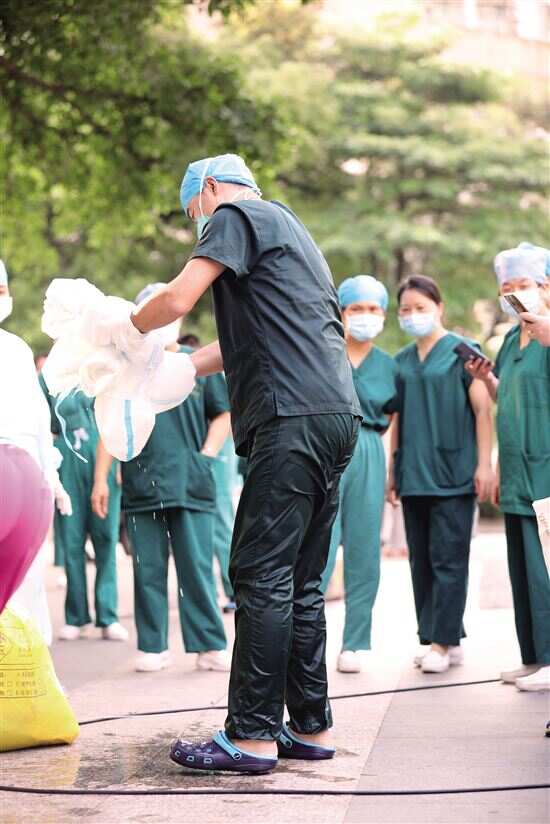 ■当胡建广防护服脱下来的那一刻,防护服都能拧出水来了。 |
