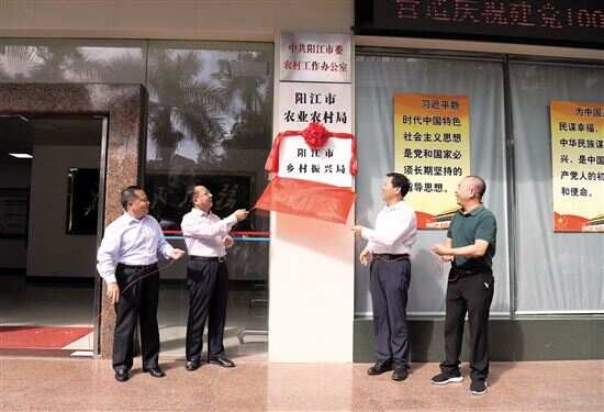 新快报讯 记者农艳芳报道 5月28日下午,阳江市乡村振兴局正式挂牌,揭开了阳江市全面推进乡村振兴新征程的序幕。而在6月3日上午,阳江市6个县(市、区)的乡村振兴局也同步举行挂牌仪式,阳江市两级乡村振兴局全部挂牌成立,乡村振兴工作迎来全面推进新阶段。 按照中央和省的总体部署,经阳江市委研究同意,阳江市扶贫开发办公室更名为阳江市乡村振兴局,仍在市农业农村局加挂牌子,主要负责巩固拓展脱贫攻坚成果、统筹推进实施乡村振兴战略等有关工作。各县(市、区)原有的扶贫开发办公室更名为乡村振兴局,也仍在农业农村部门加挂牌子,并由农业农村部门统一领导和管理。 近年来,阳江市累计投入各类扶贫资金37亿多元推进脱贫攻坚工作,全市7.5万建档立卡相对贫困人口全部脱贫,88个省定相对贫困村全部出列,贫困户“两不愁三保障”全面实现。在历年省对各地级以上市党委和政府扶贫开发工作成效考核中,阳江市多次被评为“好”档次,工作成效走在全省前列。 阳江市农业农村局相关负责人表示,在脱贫攻坚战取得全面胜利、“三农”工作重心向全面推进乡村振兴历史性转移的关键节点,设立市县两级乡村振兴局,为阳江市统筹推进实施乡村战略提供了有力的体制机制保障,标志着全市乡村振兴工作迎来全面推进的新阶段。 阳江市委农办主任、市农业农村局局长关德荣主持揭牌仪式时表示,市委农办、市农业农村局、乡村振兴局全体干部职工将以此为新的起点,乘势而上、开拓奋进,大力弘扬脱贫攻坚精神,巩固拓展脱贫攻坚成果,谱写新时代全面推进乡村振兴新篇章,为阳江打造成沿海经济带重要战略支点、宜居宜业宜游的现代化滨海城市做出新的更大贡献。