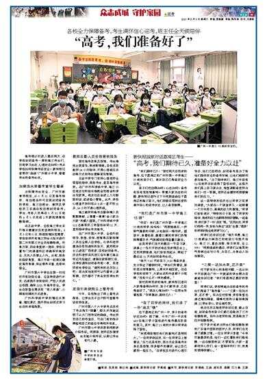 各校全力保障备考,考生满怀信心迎考,班主任全天候陪伴 高考倒计时进入最后两天,在学校封闭备考一周的高三考生们,目前学习生活、心理状态如何?考点学校如何保障考场安全?新快报记者带你“连线”广