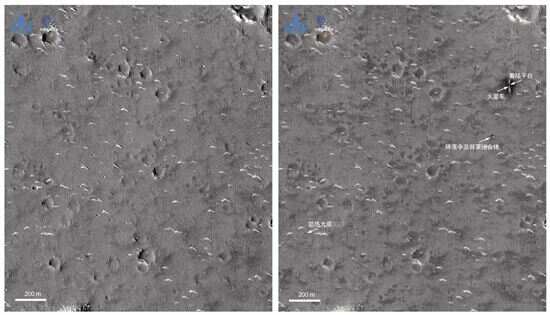 据新华社电 7日,国家航天局发布我国首次火星探测天问一号任务着陆区域高分影像图。图像中天问一号着陆平台、祝融号火星车及周边区域情况清晰可见。 影像图由天问一号环绕器高分辨率相机,于6月2日18时拍摄。图像右上角有两处明显亮斑,靠上的亮斑由两个亮点组成,较大亮点为天问一号着陆平台,较小亮点为祝融号火星车。以着陆平台亮点为中心,周围区域颜色较暗,据分析,可能是降落过程中受到发动机羽流影响造成。 此外,着陆平台南北方向,存在对称的喷射状亮条纹,可能是着陆后着陆平台钝化时吹除了较细的尘埃形成。图像中部亮斑为降落火星过程中抛离的背罩及降落伞组合体,其中背罩为圆形亮点,降落伞为长条状亮点。图像左下方向,存在另外一处明显的亮斑,为降落过程中抛离的防热大底。 截至6月6日,祝融号火星车在火星表面已工作23个火星日,开展环境感知、火面移动、科学探测,所有科学载荷设备均已开机工作,获取科学数据。环绕器运行在周期8.2小时的中继轨道,为火星车科学探测提供中继通信。
