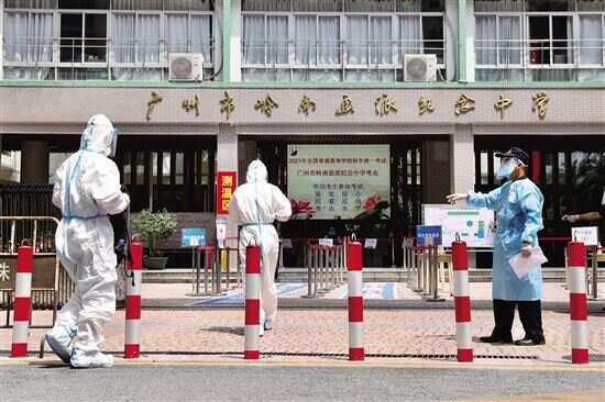 两名考生在“特殊的考场”市八医院开考、广州首位使用盲文考卷的考生配备了盲文教师监考员、隔离考点的考生穿上防护服,由专车送考……6月7日,2021年高考拉开了帷幕,对广州来说,这是一届特殊,却也温暖的高考。 专车送考、穿防护服赴考…… 多举措保证五类考生应考尽考 记者从广州市教育局了解到,为了做好疫情防控工作,今年高考广州市设置考点58个,并按10∶1配套设置隔离考场。设隔离考点11个(含医疗点考点1个)。密接考生是单人一个考场,次密接考生最多4个人一个考场,密接、次密接考生均安置妥善,实现应考尽考。对于中风险地区考生、高风险地区考生、跨风险地区考生、密接考生以及居住比较分散的次密接考生等五类考生,市交通部门采用“一对一”“点对点”专车服务的方式送考。 岭南画派纪念中学为海珠区的隔离考点,“我没有把这件事告诉我家人。”昨天下午4时30分左右,离数学考试结束还有半个小时,刘师傅早早前来学校门前等候接送考生。昨天早上,他7时多就将考生送到了考点,该隔离考点一共有10名考生,由的士专送考生陆续抵达考场。 为了准时将考生送到,他早早起床穿好防护服。由准备到接到送到返回,几个小时的时间里他都穿着这身密不透风的防护服,中午吃饭他还得将防护服脱下,又换上新的,尽管车内开了空调,刘师傅戴着的手套被汗紧紧粘在皮肤上。“肯定是难受的。”刘师傅坦言,被问及为什么会报名参加专送服务,他说:“中国人嘛,都是守望相助,武汉都挺过去了,我相信广州也可以很快挺过去。” 黄埔职业技术学校为黄埔区的隔离考点,学生穿上防护服赴考,开考前,监考员也在安全的备考室穿上防护服去监考。 作为南沙区的备用隔离考点,黄阁中学考点严阵以待。早上8时许,三辆的士分别载着三名密切接触者考生顺利抵达考场。车上三名司机穿着防护服,三名考生中途不下车,乘车进入校园并经过相关防疫措施后,分别走向自己的考室。在隔离考点,考生按照一人一考室要求进行考试。同时,考试期间将严格按照要求进行专人专车专司机往返闭环运送,确保“应考尽考”。 广州市第一中学初中部为跨风险区域考生的考点,省实、真光中学部分考生在此考点考试,其中真光中学中,来自中风险区的考生有33名,来自低风险地区的考生有53名。新快报记者看到,中风险地区的考生由司机一对一专车接送,从2号门进入学校,而低风险地区考生从1号门进入。 有心理辅导,配专属加油牌 两隔离考生在医院分开考试 6月7日,有两名特殊的考生在广州医科大学附属市八医院开考,一名是之前备受关注的无症状感染考生,另一名是在7日凌晨2时转入市八医院的考生。 市八医院介绍,考试时,一名同学基本情况很好,精神状态也不错。另一名考生出现低烧,其他情况尚可,其本人考试意愿较强,医院将其体温控制下来后让其参加考试。 “大家都很关心我们医院的两位考生,目前他们的精神状态都很不错。”市八医院副院长罗红彬介绍了两位考生的情况。“今晨我们为这两位考生安排了检查,经评估他们可以参加考试。”罗红彬说,为了让这两名考生更好地赴考,市八医院特意安排食堂做了营养餐。同时,因为在特殊考场,担心这两位考生心理压力大,为他们安排了专业的心理辅导,“效果还是不错的”。据悉,医院考点为了让考生轻松应考,还专门做了两个爱心牌,给考生加油鼓劲。 考场方面,医院专门在1号楼开辟了4间病房作为考场。考场内一人一桌一椅,按考生面向病房门口方向布置。考场里面安装了高清监控摄像头,实时录音录像,实时上传考试期间保障监控画面。考试结束后,医务人员还会在消毒室为试卷消毒。 特写 盲人考生:答题犹如发电报 华南师范大学附属中学考点迎来一位视障考生王同学,他是广州市启明学校的高三学生,也是今年广东唯一一位使用盲文考卷的考生,同时也是广州首位使用盲文考卷的考生。在志愿者老师的协助下,他提供证件及健康码,进行测温,仔细洗手。志愿者将他送到进德楼下,与考务老师交接,通过电梯送上考室。该考生安排在专用考场考试,为其配备一名盲文教师监考员、一名普通监考员。 广州市启明学校副校长布文锋告诉新快报记者,王同学目前已经通过了星海音乐学院术科,这意味着只要他高考文化分过线,就能成功考上他理想的大学——星海音乐学院。 王同学是位全盲的孩子,从幼儿园开始就在广州市启明学校学习。他从小在音乐方面就非常有天赋,“幼儿园的时候,听几遍音乐,马上就能用钢琴弹奏出来。”这个技能一直持续,现在的王同学也能“听音弹奏”。较强的音乐天赋和刻苦训练,使得他从幼儿园就开始拿钢琴比赛的奖项,甚至拿过钢琴全国赛的奖项。 王同学和同学们相处友好,经常活跃在班级活动和学校的社团表演上,“每年都在学校艺术节参加比赛,还为学校合唱队进行钢琴伴奏,一起登上了中山纪念堂、星海音乐厅等地方演出。”布文锋说。 王同学学习态度刻苦认真,这和他有坚定的目标密不可分。布文锋介绍,学校里孩子一般到大学会选择就读按摩专业,“比如讲考到北京联合大学的按摩专业”。但是王同学不太一样,“他很喜欢音乐,他的目标就是要考上音乐高等院校,所以他很刻苦学习。”盲人高考和普通高考的试题一样,只是将盲人考生的试卷翻译成盲文,在招生录取时,分数