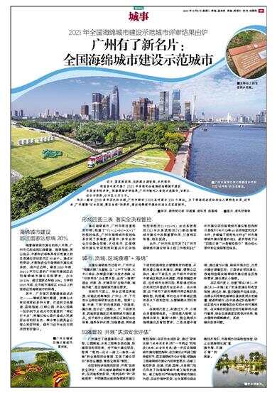 2021年全国海绵城市建设示范城市评审结果出炉 近日,国家财政部、住房城乡建设部、水利部共同组织专家开展了2021年系统化全域推进海绵城市建设示范竞争性评审。根据现场评审结果,广州市被列入首批示范城市,目前正在公示阶段,公示至6月8日。 作为一座有2200多年历史的水城,广州市拥有1368条河涌与330个湖泊。为了营造适老适幼的全人群特色水岸,近年来,广州遵循“以水定城,顺应自然”的原则,通过海绵城市建设打造生态宜居城市。 ■采写:新快报记者 邓毅富 通讯员 赵雪峰 ■图片:通讯员提供 1 海绵城市建设超过国家达标线20% 随着海绵城市建设的深入开展,广州市已形成阅江路碧道、海珠湿地、灵山岛尖、中新知识城等具有示范意义的各类建设项目或片区50余个。通过示范带动,不断推进全市海绵城市建设成系统、成片区达标。截至2020年底,306.12平方公里的广州城市建成区达到海绵城市建设目标要求,占比23.12%,超过国家达标线20%。力争到2025年底,全市城市建成区45%以上的面积达到海绵城市的标准。 其中,广东省万里碧道省级试点之一——增城区增江碧道,统筹山水林田湖草砂多种元素,打造的立体碧道、荔湖湿地、江畔公园、半岛公园等一批休闲节点成为市民喜爱的“网红打卡点”;将增江核心段打造成人民美好生活的好去处、绿水青山就是金山银山的好样板,践行习近平生态文明思想的好窗口。 2 形成四图三表 落实全流程管控 建设海绵城市,广州非常注重规划引领,构建了“(1+12+N)+X+Y”的规划体系。广州市海绵城市规划体系实现了多维度、多层次、多专业的全方位融合衔接,不但有市、区海绵城市建设专项规划和重点片区详细性控制规划(1+12+N),生态系统规划(X)与水系统规划(Y)都在海绵城市建设中发挥重要作用,三者相互衔接,相互促进。 此外,广州市先后印发了《广州市海绵城市建设领导小组工作规则》《广州市建设项目海绵城市建设管控指标分类指引(试行)》等60余项制度和技术文件,并修编了规范性文件《广州市海绵城市建设管理办法》,逐步形成了以“四图三表”“分类管控指引”等为核心要件的全流程管控体系。 3 城市、流域、区域通通“+海绵” 在建设海绵城市过程中,广州市以“核算水账”为基础,以“上中下协调、大中小结合、灰绿蓝交融”为技术思路,以“污涝同治”为主要手段,运用“+海绵”理念,对新、改、扩建项目“应做尽做、能做尽做”,落实海绵城市建设要求。 在城市尺度上,结合区域自身地质、功能区划等情况,广州上、中、下可划分出特征鲜明的生态本底。按照“上蓄、中通、下排”的治理思路,“划流域、算水账、控分区”,理顺上、中、下洪涝关系,因地制宜确定区域海绵城市建设重点。处于城市上游的北部山区做好生态保育、涵养保护水源,加强渗透,将快速下泄的径流转变为缓慢释放的潜流,不断完善山塘水库建设,调蓄、缓释山区洪水,减少下游压力;处于城市中游的中部城区做好水体调度,雨季预腾空库容,应对城市内涝风险,旱季通过再生水利用对河道进行生态补水,活水保质;处于城市下游的南部河网区做好洪潮防控,防倒灌,同时也为中部城区提供洪水下泄的空间,以缓解潮水顶托的压力。 在流域尺度上,则通过大、中、小结合完善海绵体系。一是梳理大海绵,以流域为单元,算清“水账”,提出流域大海绵建设及管控要求;二是完善中海绵,通过清污分流,降低河涌水位,为雨水腾出调蓄空间;三是结合项目建设,因地制宜落实海绵城市建设理念及指标要求,建设源头小海绵。 在区域尺度上,注重“源头(绿)—中途(灰)—末端(蓝)”的系统建设和有效衔接,通过灰、绿、蓝交融提升设施功效。在源头利用绿色海绵设施实现雨水的减量、减速和减污;在中途通过灰色管网厂站实现污水的精准收处和雨水的可靠排放;在末端依托蓝色空间对超标雨水进行蓄排,结合设施调度实现低水快排、高水缓排的错峰模式,系统解决洪涝问题。 4 加强管控 开展“洪涝安全评估” 广州建立了涵盖建筑小区、道路工程、公园绿地、水务工程等各类在建、拟建项目的项目库,对于每个建设项目,按照“规划—设计—施工—验收—运维”的全流程闭合管理,实现了建设项目“类型全覆盖、管理全流程”管控。 在控制性详细规划阶段,开展“洪涝安全评估”,深化地块海绵城市建设要求;在用地规划阶段,“规划条件”和“用地清单”中明确提出地块海绵城市建设管控指标;在项目生成阶段,通过“联审决策”(政府投资类)和“一书两证”的核发(政府、社会投资类)进一步压实海绵城市建设管控指标;在方案设计和施工图审查环节,落实海绵城市设计专篇,明确施工图海绵城市建设内容审查要点;在竣工验收阶段,住建、交通、园林、水务部门均已印发了加强海绵城市竣工验收的通知,竣工验收时严格验收海绵城市建设内容;在运行维护阶段,出台海绵设施运维技术指引,市海绵办加强检查抽查,防止出现海绵设施“重建失管、只建不管”的现象。