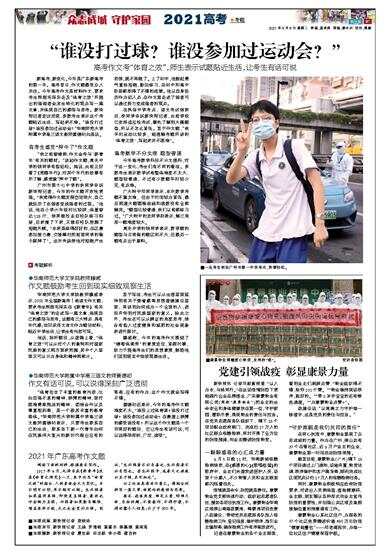 高考作文考“体育之效”,师生表示试题贴近生活,让考生有话可说 新高考,新变化。今年是广东新高考的第一年。高考首日,作文题最受众人关注。今年高考作文是材料作文,要求考生根据毛泽东论及“体育之