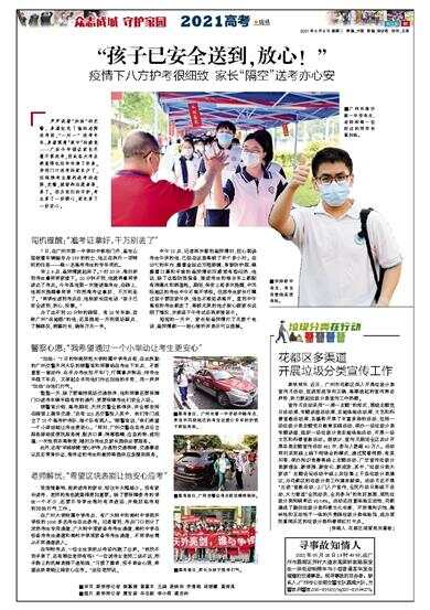 疫情下八方护考很细致 家长“隔空”送考亦心安 声声说着“加油”的交警、身着红色T恤的老师送考团、“一对一”送考专车、身着寓意“高中”的爱宠……广东今年倡议家长尽量不要送考,因此各大考点都显
