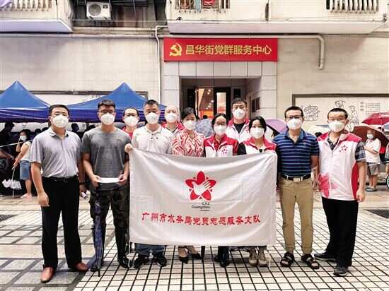■广州市水务局党员突击队在荔湾区昌华街党群服务中心核酸检测采集点开展志愿服务。 |