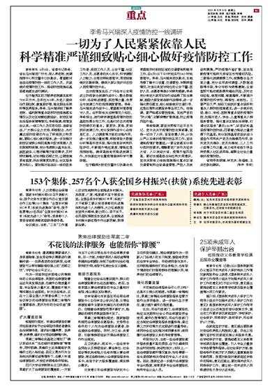 李希马兴瑞深入疫情防控一线调研 新快报讯 6月8日,省委书记李希、省长马兴瑞到广州市,深入养老院、流调指挥中心和交警卡口执勤点,看望慰问奋战在疫情防控一线的工作人员,并就做好疫情防控工作、