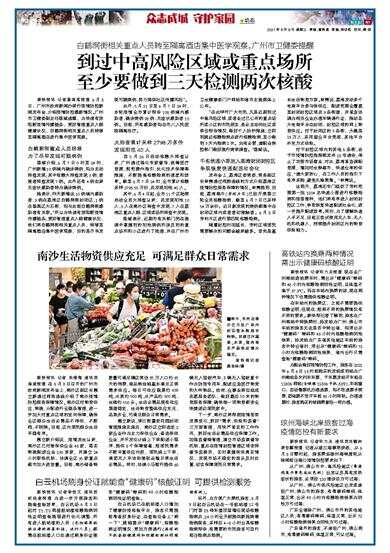 新快报讯 记者 朱清海 通讯员南宣报道 在6月8日召开的广州市政府新闻发布会上,南沙区副区长惠立新通过网络连线介绍了南沙疫情防控服务保障情况。南沙区对物资供应、物流、分配进行全链条管理,进一步加