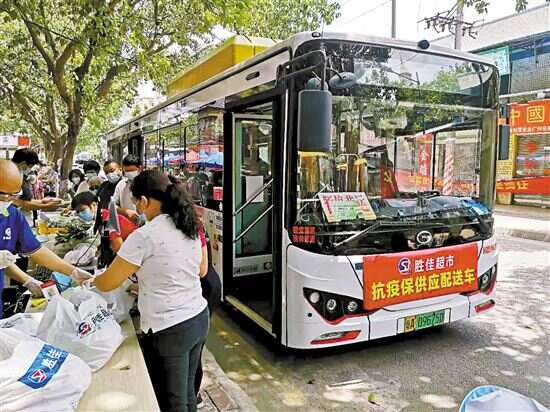 满载肉菜、米面、牛奶等物资 新快报讯 记者陆妍思 通讯员 穗商务宣报道 6月9日上午10时,6辆特殊的公交车驶入广州市荔湾区封控区域石围塘街道。这些公交车上满载肉菜、米面、牛奶、罐头、水果等生活物资,成为封控区内平价便捷的移动超市,受到市民的热烈追捧。 “关闭中高风险区的肉菜市场通告发布后,很多群众担心买不到菜等问题,我们一直在想方设法增加生活物资供应点和供应品种。通过‘公交移动超市’项目,一是减少集聚引发疫情的风险,二是方便了居民在社区就近购物,三是增强了保供应的机动能力。”广州市商务局相关负责人表示。广州市商务局和广州公交集团第二公共汽车有限公司提出打造公交移动超市的想法后,得到胜佳超市、京东七鲜超市、温鲜生、粤旺、华润万家、西亚兴安等超市的积极响应。昨天早上7时,二汽的公交车开到指定地点装货,10时到达封控区域指定街道点位。 6月9日是公交移动超市第一天试运行,在石围塘街道的四个点投放了6辆移动超市车。车上配置了生鲜(包括青菜和肉类)、大米、面食、肉类罐头、食用油、卷纸、口罩、酱油和盐等日常生活用品和防疫物资,商品质量有保证并明码标价。一个手持二维码的小姐姐说: “不多赚一分钱,全部按市场价出。” 公交车刚停下,市民透过车窗看见大批生活物资,纷纷驻足询问“有什么?”“怎么卖?” 街道的工作人员在现场搭起了帐篷,摆起了长桌,方便居民选购,志愿者也闻讯前来协助维持秩序。在销售现场,工作人员做好了防护措施,装袋、称重、收款,一切井然有序。 广州市商务局相关负责人表示,下一步将根据居民需求情况,协调各大超市及时调配移动超市的物品种类和数量,并合理安排投放班次和投放地点,逐步扩大覆盖范围,不断提高物资投放能力,保障居民生活物资需求。据悉,广州市商务局还协调粤望农业集团在封控、封闭区域投放粤港澳大湾区“菜篮子”平台零售终端,冲口街、花地街、中南街等3个街道拟布设8台零售终端,方便居民自助买菜。