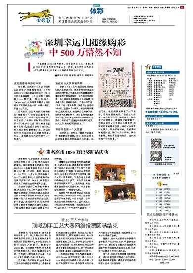 深圳幸运儿随缘购彩 中500万懵然不知