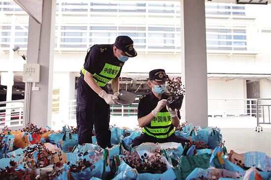 ■海关工作人员正在检查进出口商品。 通讯员供图