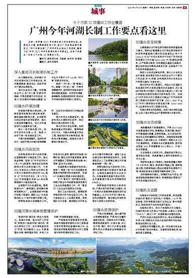 8个方面32项重点工作全覆盖 为进一步明确2021年河湖长制工作目标和任务,协调各方力量,统筹推进各项工作,助力广州实现老城市新活力、“四个出新出彩”,广州市河长办结合工作实际,编制了《广