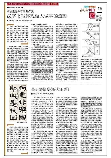 ■王嘉(广东美术馆研究员、教授) 研究广东书法的都知道,吴子复最喜欢的7块碑,依次是《礼器碑》《张迁碑》《西狭颂》《石门颂》《郙阁颂》《校官碑》《好大王碑》。在“野意楼”的弟子及再传弟子中,有些是把这7块碑作为学习的重点,于众多的汉魏碑刻中格外勤加揣摩。有些甚至完全按照其顺序,作为学习进阶的秩序加以研习。吴子复在与其子吴瑾的对话中曾经谈道:“晋高句丽好大王碑书道艺术朴质,高韵樨拙,纯真新意,艺态穷极。其变堪称魏晋碑刻神品。”可见《好大王碑》在吴子复心目中有着与众不同的重要位置。 ■收藏周刊记者 陈福香 统筹 吴子复生于1899年3月25日,卒于1979年8月24日。在广东书法史上,与胡汉民(1879—1936年)、侯过(1880—1973年)、林直勉(1888—1934年)、胡根天(1892—1985年)、容庚(1894—1983年)、秦咢生(1900—1990年)、商承祚(1902—1991年)、麦华三(1907—1986年)、李曲斋(1916—1996年)等前后相踵。吴子复在1926年毕业于广州市立美术学校西画系的时候,还主要是从事西画创作。1932年至1936年受聘回到广州市立美术学校的时候,也还是在西画系。这期间,受到林直勉书法的启发,开始专意于书法,对汉碑用功最勤。他排位里的7块碑,分别是6块汉碑和1块晋碑。吴子复认为,前6块汉碑的意义在于它们“是一切书法点画形式的祖宗,魏晋以后的书法无不从此枝叶分布。” 吴子复所列的7块碑里,6块汉碑的刊刻时间相对较为集中。《礼器碑》永寿二年(156年)、《张迁碑》中平三年(186年)、《西狭颂》建宁四年(171年)、《石门颂》建和二年(148年)、《郙阁颂》建宁五年(172年)、《校官碑》光和四年(181年),前后相隔不出40年,均为东汉后期的名碑。《好大王碑》的刊刻时间是东晋义熙十年(414年),比前面的6块汉碑已经晚了200多年。但比北魏永平四年(511年)的《郑文公碑》早了几乎100年,比北魏普泰元年(531年)的《张黑女墓志》早了117年。比《龙门二十品》(大约在477—517年)也早了半个世纪。惟其如此,《好大王碑》在书法史上的位置,就相当于汉碑和魏碑之间的中间地带。作为东晋时期的碑刻,在研究书法史的来龙去脉、承前启后的意义上,就有着格外重要的价值。 《好大王碑》进入书法的视野最晚,在光绪初年的1876年才重新引起业内的关注。而在此之前,《好大王碑》沉睡了千年之久。如果说《礼器碑》《张迁碑》《校官碑》是名副其实的“碑”,《西狭颂》《石门颂》《郙阁颂》是摩崖,那么,《好大王碑》则是“立石”,高6.39米,刻在不规则的方柱子上,字形硕大,已经超出了普通的“碑”的字形,可以视作“摩崖”。 就隶书的研习而言,新发现的隶书对于书法界有着重要的“启新“意义。《礼器碑》在山东曲阜,典雅端庄。《张迁碑》在山东泰山岱庙,方劲古拙。《校官碑》现藏于南京博物院,虽然结体方正,但是多用圆笔,有篆书遗风。《礼器碑》一直都是汉隶中的经典,《张迁碑》对清代隶书影响很大,可惜在1892年毁于火,《校官碑》历经变故,在光绪年间重新立于南京孔庙,三碑在晚清民国期间,都是“网红级别”的热点话题。《西狭颂》《石门颂》和《郙阁颂》,号称“汉代摩崖三颂”,《石门颂》现藏于陕西汉中博物馆,《郙阁颂》现藏于陕西略阳灵岩寺博物馆,《西狭颂》在甘肃成县原址保留,因为末尾有“仇靖”,开启了书法家落款的先例。 作为光绪年间新发现的碑刻,《好大王碑》不仅是学者们的新话题,也是书法家们的新话题。王懿荣、郑文焯、罗振玉、容庚对《好大王碑》都有研究。作为一个时代的热点话题,吴子复对《好大王碑》这个“热点”产生兴趣,并列入7块碑之尾,也就可想而知了。 吴子复是20世纪广东书法的一个“重镇”,特别是在隶书的创作方面,以其独有的见地和思考,开辟了“吴隶”的新篇章。不仅吴子复偏爱《好大王碑》,比吴子复小47岁的侯开嘉也偏爱之。侯开嘉曾经谈到取其“古朴稚拙之趣”。事实上,因为地理区域的原因,虽然《好大王碑》刊刻的时候,已经比王羲之的《兰亭序》(353年)还要晚41年。也意味着,在这个时候,书法主流领域已经进入了索靖、陆机、王谢的新时代,但是在书法风格上,基于地理因素等原因而在《好大王碑》保留的秦隶风范,又似乎让人感受到了比《礼器碑》等6块碑石更早的书法追求。在这个意义上,《好大王碑》又属于“后起”而“承先”,体现了从篆书到隶书的转折和演化。 隶书是中国书法史上的重要阶段,“隶变”不仅具有文字意义上的弃旧迎新,同时也是书法意义上的新开篇。吴子复晚年偏爱《好大王碑》,在某种程度上既是对隶书经过反复锤炼之后的向古而生,也是深入研究晚清民国最热点话题的碑石,而在书法风格上力求开风气之先的新追求。这一点,也是广东书法家在20世纪开拓创新的体现。