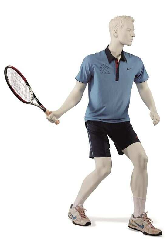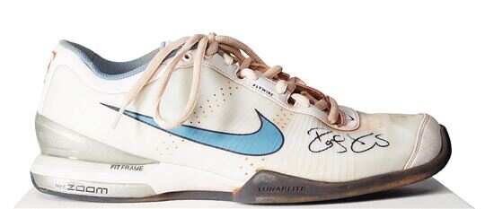 ■费德勒于2009年在法国网球公开赛中击败罗宾·索德灵夺冠时的球衣和球拍 |
