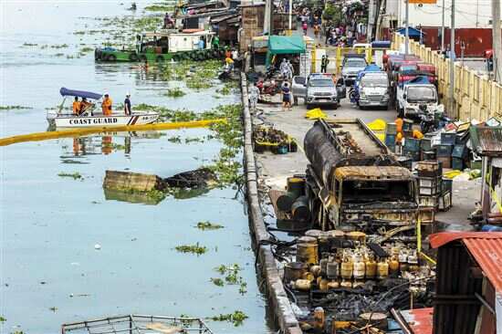 12日,菲律宾马尼拉一艘小型货船在码头加油时起火,造成至少6人受伤、2人失踪。