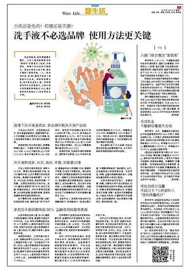 水洗还是免洗?抑菌还是灭菌? 受疫情影响,居民健康需求爆发,从幼儿园起就被教导的“勤洗手”总算普及了起来,手部清洁、消毒产品也迎来升级换代。流动水消杀力度不够,香皂又增高了感染风险,一人一泵的洗手液、抗(抑)菌洗手液成了居家旅行必备品。种类和品牌众多,洗手液应该怎么选?深圳消委会的对比实验显示,大部分洗手液除菌效果都超过90%,建议使用洗手液超过15秒后再用水冲洗。 ■新快报记者 陈思陶 通讯员 游华玲 疫情下洗手液受欢迎 多品牌开拓洗手液产品线 不论在公共场所,还是家庭生活中,洗手液越来越常见。随着消费升级,人们对健康卫生的要求也与日俱增,加之抗疫需求的催化,洗手液市场增速明显。 弗若斯特沙利文报告显示,按零售销售价值计,中国洗手液市场规模由2015年的18.92亿元增加至2019年的27.21亿元,复合年增长率为11%,与此同时,香皂的市场规模以复合年均0.2%的比率下降。2019年,洗手液在中国的渗透率为28.7%,低于日本及美国,但报告预期,洗手液在中国的渗透率在2024年将达到55.8%,按25.3%的复合年增长率增长,到2024年零售销售价值将达到84.21亿元。 疫情的到来,加速洗手液的消费普及。据阿里平台数据,2020年其洗手液总体销售额超过21亿元,销量超过5973万件,销售额同比2019年增长了272%,特别是2020年一季度疫情刚爆发的时候增速迅猛,5月份疫情得以控制后增速开始回落。 受此影响,除了日化品牌,护肤品牌也纷纷推出除菌消毒产品,为不同年龄段的消费者提供多样的选择。 洗手液种类多,水洗、免洗、杀菌、抑菌要分清 市场上的洗手液种类较多,通常分为三种,需要水洗的普通洗手液、抗(抑)菌洗手液,以及不需要水洗的免洗洗手液。普通洗手液通常属于“妆”字号,与化妆品,和香皂、洗面奶同属一个范畴,主要起到清洁去污的作用。抗(抑)菌洗手液带有“消”字号,添加了抗菌、抑菌有效成分,针对手部常见致病菌,如化脓性球菌、肠道致病菌、致病性真菌等具有明显的抑制作用。 由于携带方便,在疫情中最“出圈”的是免洗洗手液,通常也是“消”字号产品,最基础的成分是酒精、甘油,酒精用于消毒,甘油用于润滑肌肤。南方医科大学第三附属医院感染科主任杨创国表示, 酒精可以很容易渗透到细菌体内,使细菌的蛋白质凝固变性,造成细菌死亡,起到杀菌作用。经过多次实验发现,75%的酒精杀菌效果最好,纯酒精或者酒精浓度低的杀菌效果不好,这也决定了含酒精消杀产品的酒精含量多在75%。 电商平台上,免洗洗手液也有不含酒精的配方,其消毒成分一般是过氧化氢、次氯酸类等高效广谱杀菌剂。此外,还有植物成分的免洗洗手液,含有芦荟、柑橘、金盏花等植物提取成分,但整体抗菌效果较化学成分显弱。 在洗手液的宣传页面上,有着抑菌、消毒、灭菌的不同产品功效描述,但对消毒效果的说明并不明确。杨创国表示,抑菌主要指抑制细菌生长;杀菌就是杀灭细菌;消毒一般是杀灭细菌繁殖体,不能杀灭芽孢;灭菌是消灭所有微生物,包括细菌芽孢,因此消毒和灭菌相比,要求相对低一些。 多款洗手液除菌率超90% 正确使用除菌率更高 从洗手液的名称上看,抗(抑)菌洗手液的除菌能力更高,普通洗手液似乎平平无奇。为此,深圳市消费者委员会对18个品牌的18款洗手液进行比较试验,受测产品包括6款水洗普通洗手液,6款水洗抗(抑)菌洗手液和6款免洗洗手液。 检测结果显示,仅使用清水洗手30秒,细菌去除率可以达到85%。在手上揉搓洗手液30秒,并在流动水下冲洗5秒后,6款水洗普通洗手液去除细菌有效率均达到了90%以上;6款水洗抗(抑)菌洗手液的去除细菌有效率均达到了97%以上;6款免洗洗手液在手上作用60秒,去除细菌有效率均达到了99%以上。 但消费者不宜盲目追求更高的杀菌作用,除菌率和产品类型有关,也与使用时间有关。在测试中水洗普通洗手液在揉搓15秒、30秒后,可以达到95%、98.97%的细菌去除率,与水洗抗(抑)菌洗手液、免洗洗手液的除菌率大同小异。 因此,深圳市消委会建议,家庭日常生活中,使用普通洗手液即可满足需求;家有病人、去医院等可能接触到较多病菌时,可优先选择水洗型抗(抑)菌洗手液,并适当增加揉搓和冲洗时间以达到更好的除菌效果。不论选择哪种洗手液,揉搓时间越长去除细菌效果越好,建议搓手至少15秒后再用流动水冲洗干净。 在外出不方便用流水洗手,则可使用免洗洗手液。但“免洗”能够达到杀菌的目的,却无法去除手部的污垢。免洗洗手液品牌客服告诉记者,在手上有明显污渍,如泥土、灰尘、血液、体液、油污或排泄物的情况下,不宜使用免洗洗手液,建议搭配水洗型产品进行手部清洁,可以有效去除手部污染物及致病微生物。同时,频繁使用洗手液会让皮肤干燥,建议搭配护手霜使用。要提醒的是,大部分免洗洗手液的主要成分都是酒精,家长给宝宝洗手后,宝宝可能会吮吸手指而误食,出现酒精过敏等情况,家有小宝宝的家长要注意。