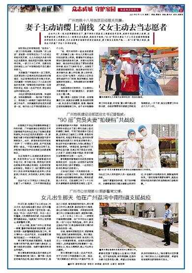 广州地铁十八号线项目经理关则廉: 在全市人民一起与疫情赛跑的当下,数不清的小家庭里上演着或各司其职,或联手抗疫的感人故事:老爸带着宅家上网课的女儿一起做社区志愿者,妈妈坚守医院;“90后”