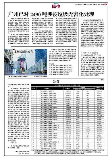 新快报讯 记者李佳文 通讯员成广聚报道 确保疫情防控专项垃圾100%无害化处理,是有效切断病毒传播渠道的一项重要工作。6月14日,广州市城市管理综合执法局公布统计数据:5月21日至6月13日,全