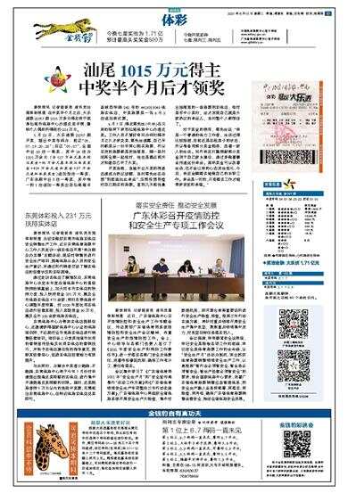 落实安全责任 推动安全发展 新快报讯 记者陆妍思 通讯员粤体彩报道 近日,广东省体彩中心召开疫情防控和安全生产工作专题会议,传达贯彻广东省体育局系统疫情防控和安全生产会议精神,布置安全生