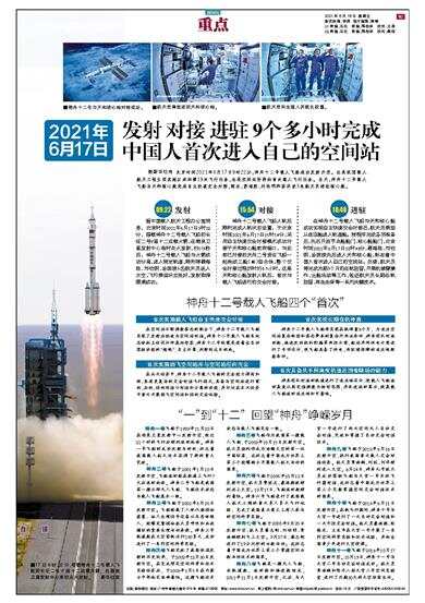 2021年6月17日 据新华社电 北京时间2021年6月17日9时22分,神舟十二号载人飞船成功发射升空。这是我国载人航天工程立项实施以来的第19次飞行任务,也是空间站阶段的首次载人飞行任