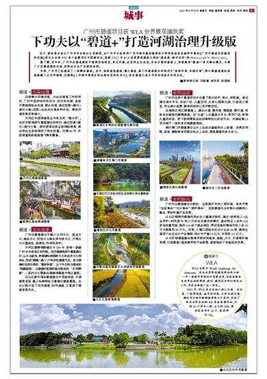广州市碧道项目获WLA世界景观建筑奖 近日,新快报记者从广州市河长制办公室获悉,由广州市水务局和广州市城市规划勘测设计研究院组织实施和申报的《广州市碧道总体规划和实施》项目从全球400多个