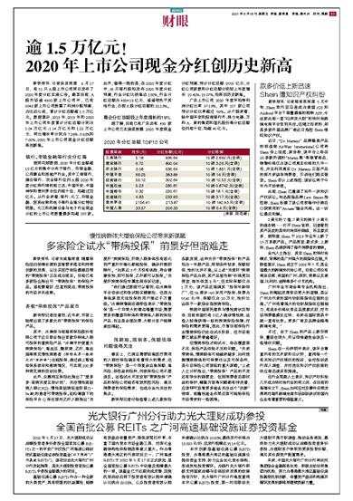 逾1.5万亿元! 2020年上市公司现金分红创历史新高