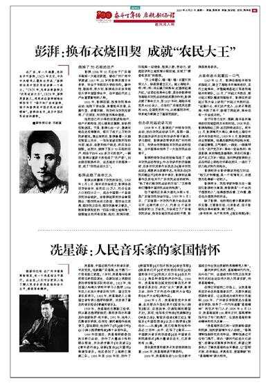 在广东,有一只雄鹰,他的名字叫彭湃。1923年元旦,中共中央领导人瞿秋白所说:“彭湃同志是中国农民运动第一个战士。”1926年,毛泽东称彭湃为“农民运动大王”。1929年,彭湃英勇就义。周恩来在