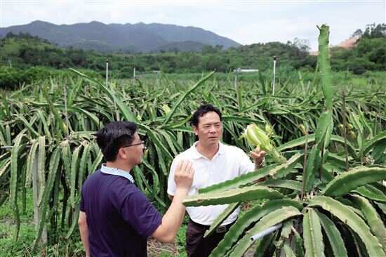 ■江山察看新兴县六祖镇洒落村火龙果长势。 |