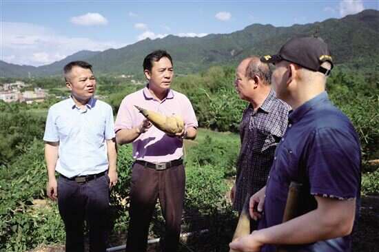■江山(左二)询问云城区前锋镇矮岭村笋竹产业发展情况。 |