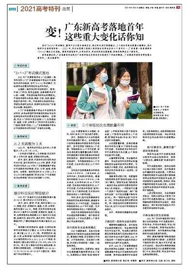 实行“3+1+2”考试模式、数学不分文理与物理历史、部分科目实行等级赋分、三个批次录取志愿数大幅增加、实行院校专业组投档录取……2021年,作为全国第三批进入高考综合改革试点的8个省市之一,广东