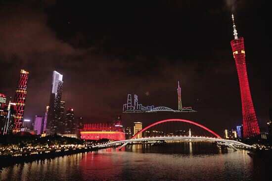■为庆祝海心桥开通,25日晚,千架无人机随着海心桥的亮灯腾空翱翔,为羊城带来一场绚丽的视觉盛宴。 |