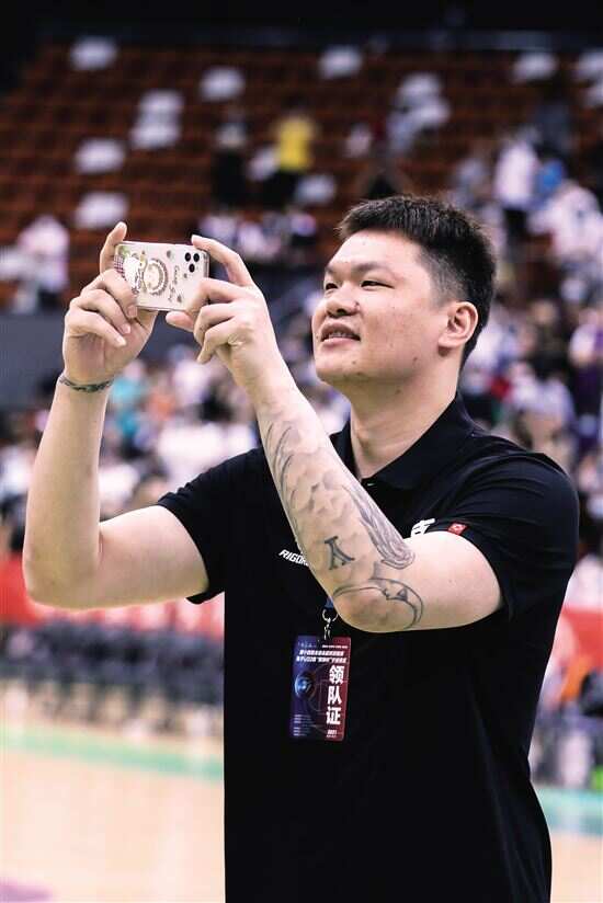 ■全运会预赛上,身为球队总经理的朱芳雨亲自为球员拍照。VCG图 |