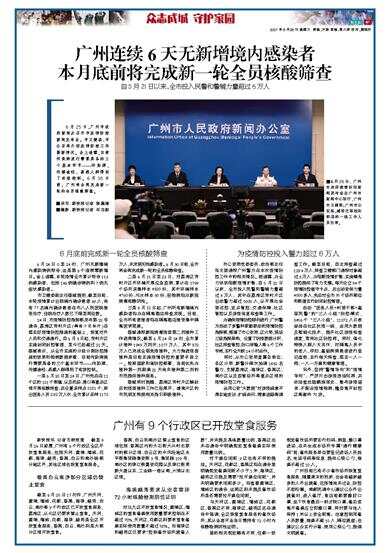 广州连续6天无新增境内感染者 本月底前将完成新一轮全员核酸筛查