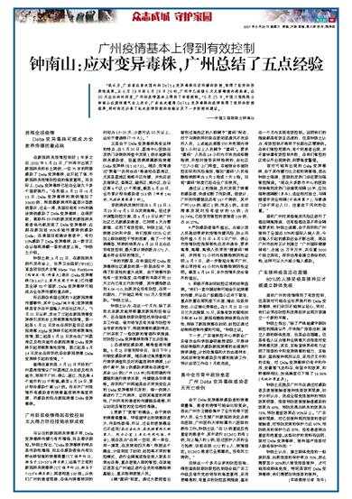 广州疫情基本上得到有效控制 “我认为,广东省在首次国内的Delta变异毒株社区传播的防控,取得了较好的阶段性成果。从6月19日到6月24日24时,广州市已连续6天无新增境内感染者。在30天