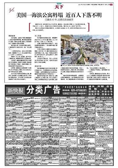 美国一海滨公寓坍塌 近百人下落不明