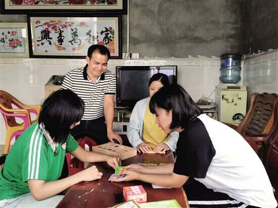 ■何央(左二)和特殊学校的老师一起上门辅导肢体残疾的脱贫户孩子。 |