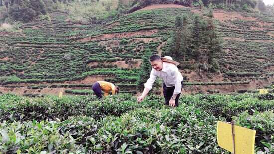 ■福斗村,广东石油驻村干部与茶农一起采茶。 |