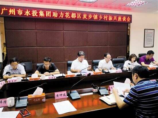 ■广州水投集团党委书记、董事长范瑞威与花都炭步镇召开助力乡村振兴工作座谈会。 |