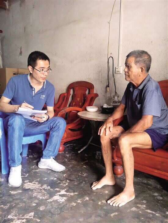 ■2016年驻村后,黄浩与工作队队员挨家挨户走访,摸查贫困户的生产生活情况。 |