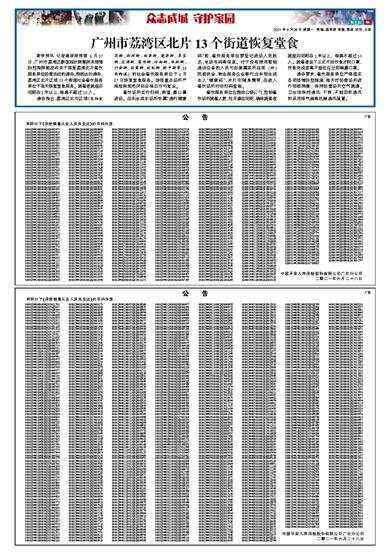 广州市荔湾区北片13个街道恢复堂食