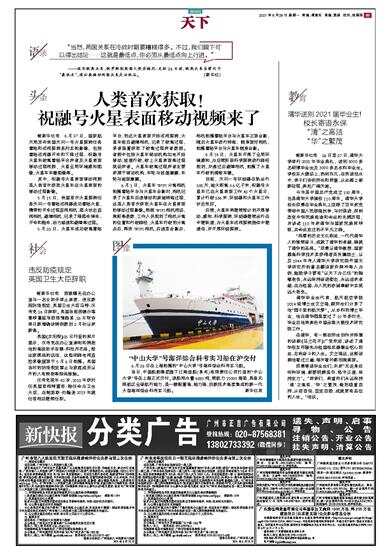 据新华社电 6月27日,国家航天局发布我国天问一号火星探测任务着陆和巡视探测系列实拍影像,包括着陆巡视器开伞和下降过程、祝融号火星车驶离着陆平台声音及火星表面移动过程视频,火星全局环境感知图像